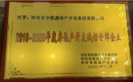 12月28日,由長(zhǎng)沙市住房和城鄉(xiāng)建設(shè)局、長(zhǎng)沙市房地產(chǎn)開(kāi)發(fā)協(xié)會(huì)、長(zhǎng)沙市房地產(chǎn)業(yè)協(xié)會(huì)舉辦的長(zhǎng)沙市房地產(chǎn)開(kāi)發(fā)誠(chéng)信金牌企業(yè)表彰暨第二屆“美麗長(zhǎng)沙 美好生活”高峰論壇在長(zhǎng)沙舉行,中欣集團(tuán)榮獲“2019-2020年度房地產(chǎn)開(kāi)發(fā)誠(chéng)信金牌企業(yè)”稱(chēng)號(hào)。“房地產(chǎn)開(kāi)發(fā)誠(chéng)信金牌企業(yè)”是長(zhǎng)沙市住房和城